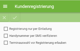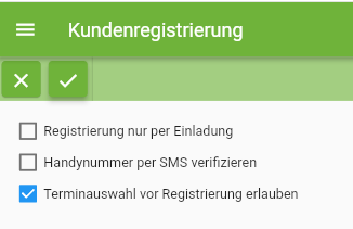 Durch diese Option wird die Möglichkeit der Kundenregistrierung von Ihrer Terminbuch.de Seite entfernt. Kunden können sich nur registrieren, wenn sie